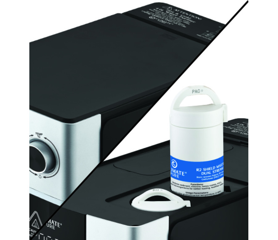 Stainless-steel internal cold water tank. Isolated double filter chambers prevent contamination of stored water.