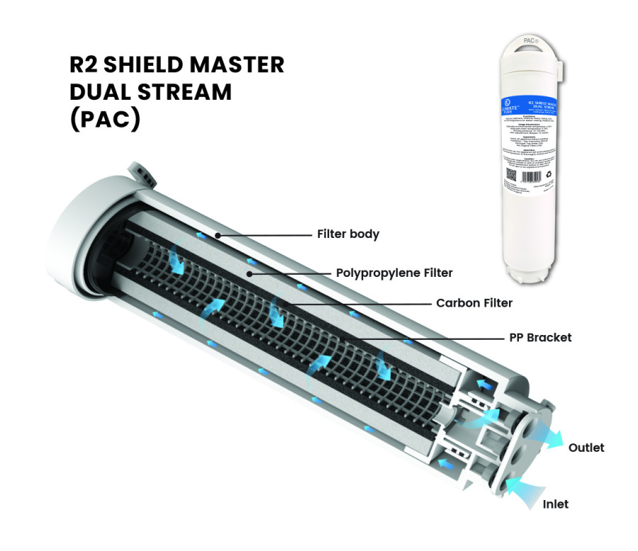 Double UV-C technology ensures every drop is sterilised, eliminating bacteria, viruses, and fungi. Prevents microorganism growth by disrupting their DNA.